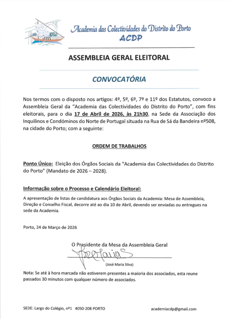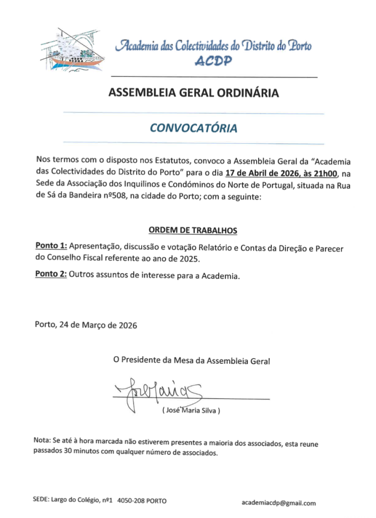 Convoca-se os estimados associados para as Assembleias Gerais a terem lugar no próximo dia 17 de abril de 2026, conforme anexos.